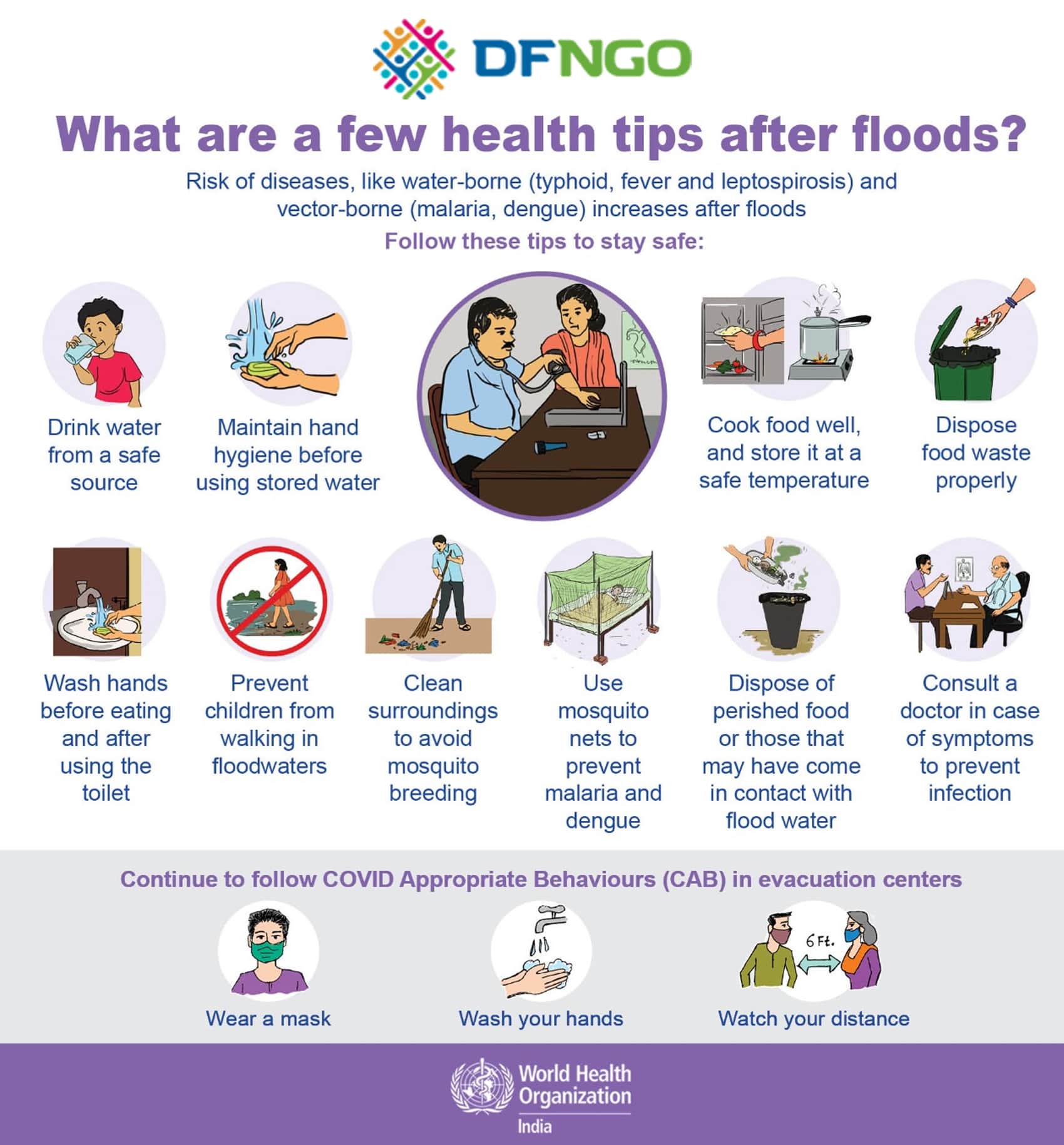 Mobile health camps provide first aid, checkups, and essential medicine to disaster survivors.