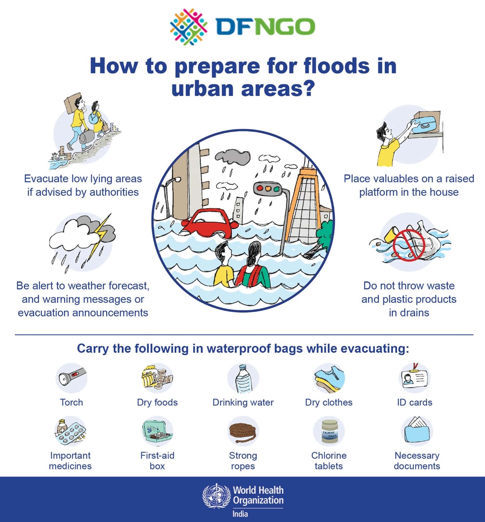 Our teams keep pre-packed kits and supplies ready for common disasters like floods.
