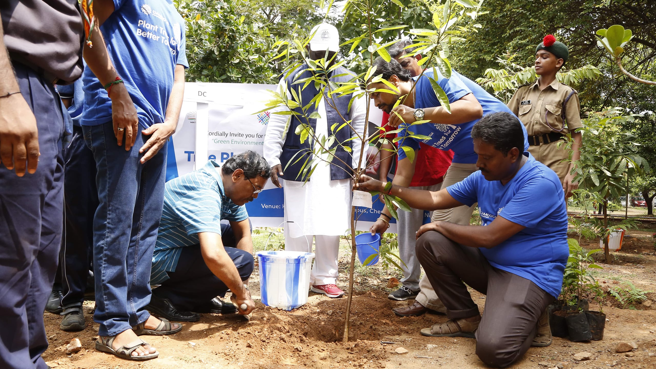 We involve students, volunteers, and self-help groups in tree planting, cleanups, and campaign execution.
