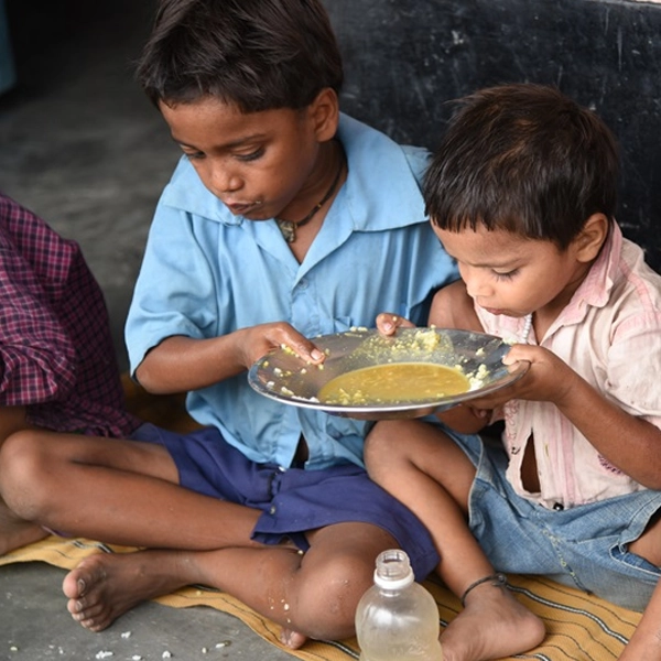 We supplement mid-day meal programs at community centers and informal schools to prevent hunger in children.